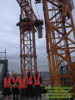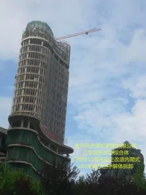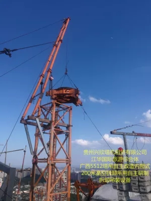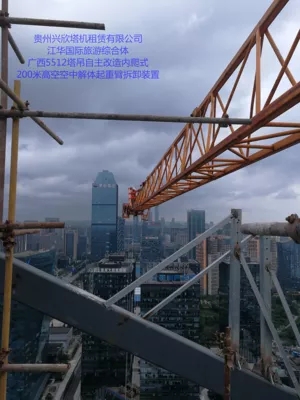 江华国际旅游众合体,广西5512塔吊自主改造爬式200米高空空中解体起重臂拆卸装置